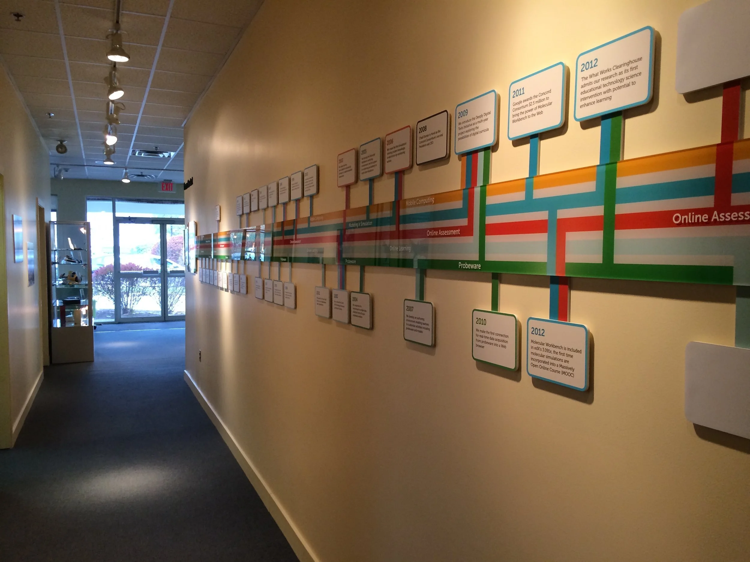 This timeline graphic organizes the company’s milestones into six different “threads” or themes. The timeline elements are modular so that they can be easily changeable and update-able.